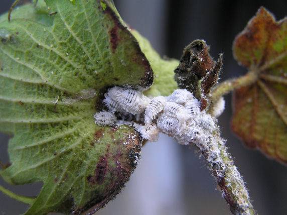 • When plants have mealybugs during the vegetative stage, their stems become distorted, twisted, and bushy in the affected areas.