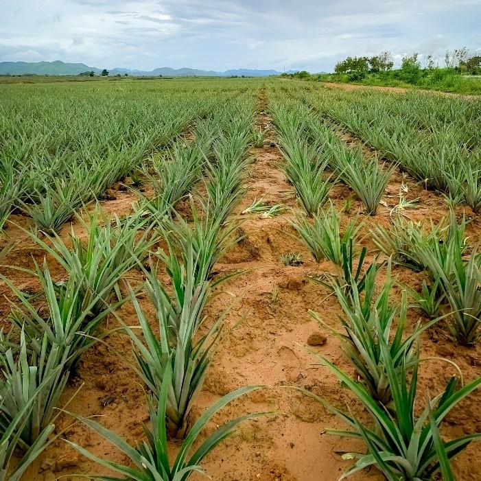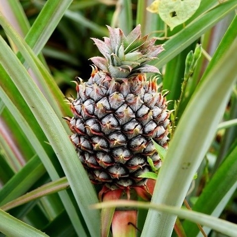 The pineapple (Ananas comosus) is one of the most popular tropical fruits. The name pineapple in English (or piña in Spanish) comes from the similarity of the fruit to a pinecone. Ananas comes from anana, the Tupi word for the fruit, meaning "excellent fruit". Comosus means tufted and refers to the stem of the fruit.