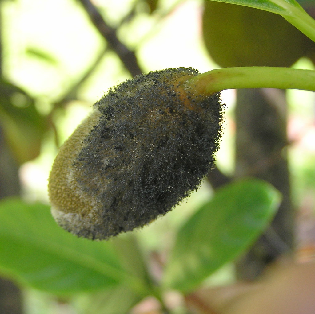 • Fungus develops into a black and velvety growth and covers the entire fruit and later, fruit drops