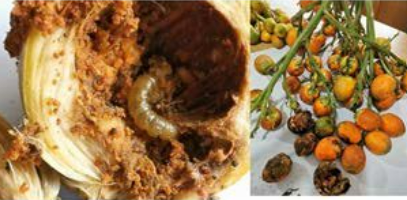 - Affected spadices may be opened and if all the female flowers have been damaged the inflorescence should be removed and burnt