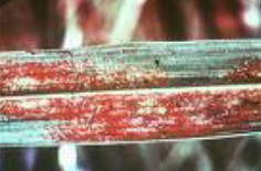 • yellowish speckles on the lamina. These speckles later coalesce, become bronze coloured and the leaves wither away.