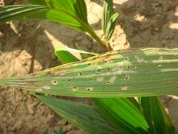 • Necrotic spots on leaf tips & margins are observed