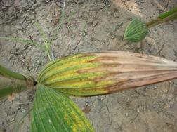 • Development of yellow spots appears on younger leaves and even on the spears