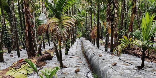 • In severe cases, the bole of the palm is also eaten up. They feed on roots of intercrops like banana, cocoa, yams etc.