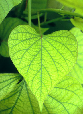 • Red or purple pigmentation may appear on the upper surface of older leaves,