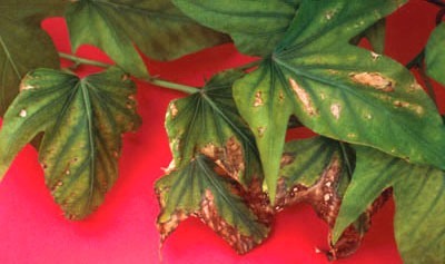 • On the oldest leaves, yellow areas become brown and necrotic, but usually remain soft starting between the veins