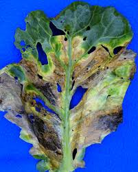 - The veins in infected leaves, stems, and roots sometimes become black.