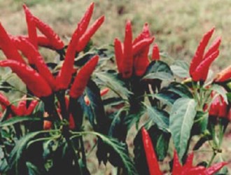 Bacterial wilt resistant variety from the Kerala Agricultural University, fruits are highly pungent, light green and borne in bunches. Average fruit length is 4 cm and suitable for high density planting.