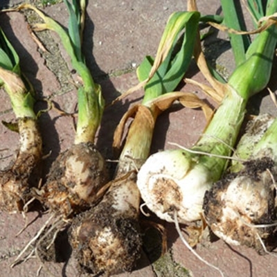 - Symptoms are stunted growth, discoloration of bulbs, and swollen stems.