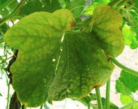 • Vein clearing results in a faint green network( skeleton) on leaf