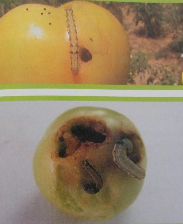 - If the fruit is bigger in size, it is partly damaged by the caterpillar but later it is invariably invaded by fungi and bacteria and spoiled completely.