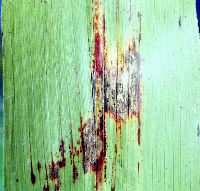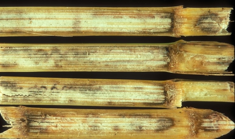 - The symptoms of the disease are found on leaves, glumes , coleoptile, leaf sheaths, and panicle branches and rarely on roots of young seedlings and stems.