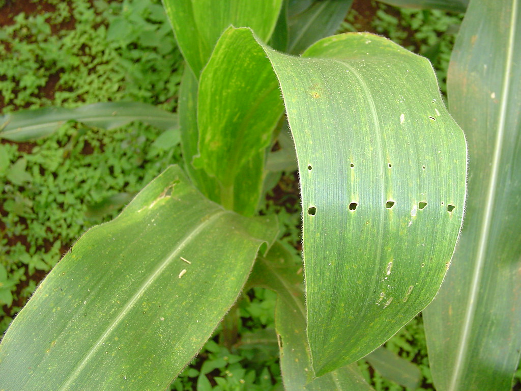 • Young larvae crawls and feeds on tender folded leaves causing shot holes
