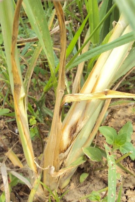 - Dropping of leaf tips, spikelets, fingers or entire head are other symptoms.