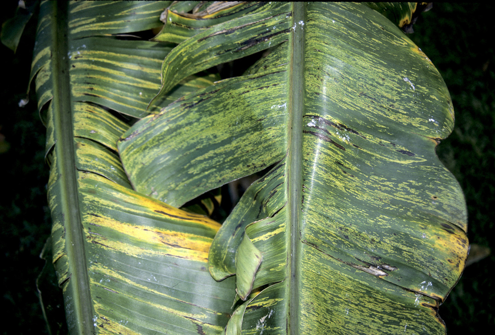 Banana mosaic or Infection chlorosis (Cucumber Mosaic Virus (Banana strain); Vector : Aphis gossypii ))