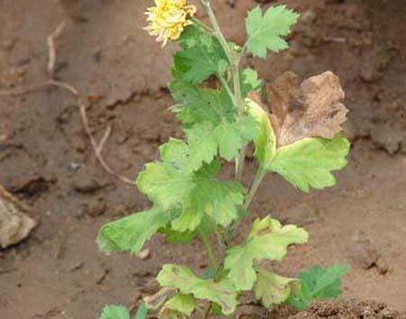 • Entire plant turns yellow in colour.