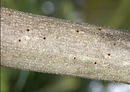 - Withered or dried branches with shot holes indicate the presence of the pest.