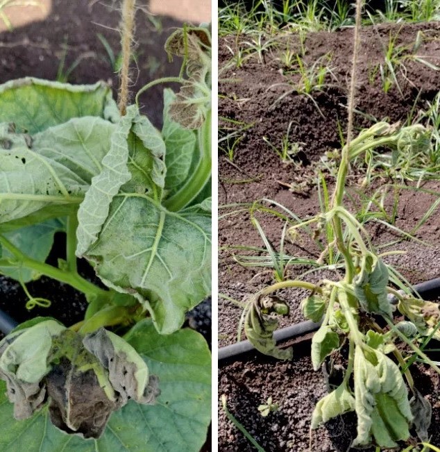 • Leave lose turgidity and then sudden drooping and wilting of plants.