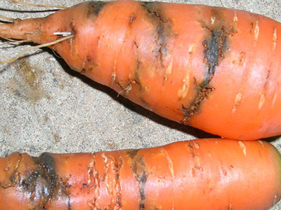 - The larvae mine in the roots, causing holes that are subject to rot by secondary organisms. Heavy maggot feeding is indicated by drooping, discolored foliage.