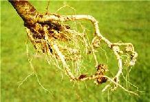 - Infected roots become knobby and knotty