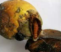 - Affected spadices may be opened and if all the female flowers have been damaged the inflorescence should be removed and burnt