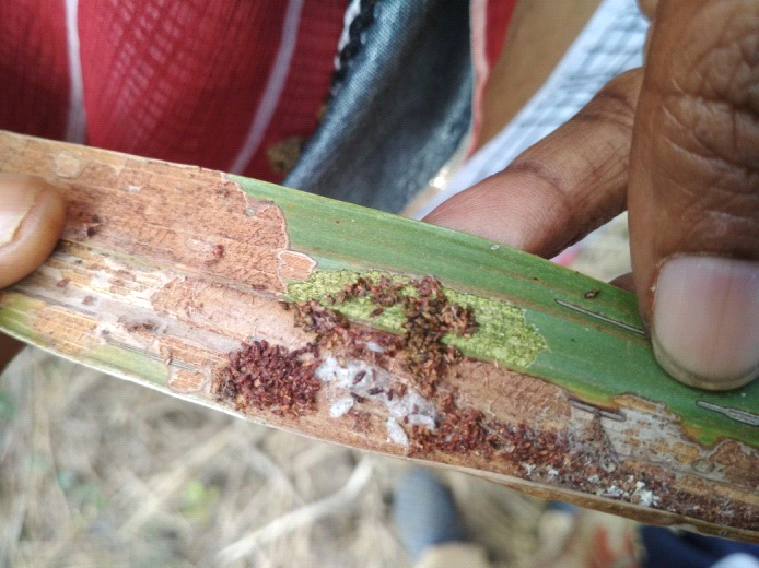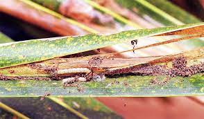 Surveillance, monitoring, early detection of the pest and destruction of severely affected fronds.