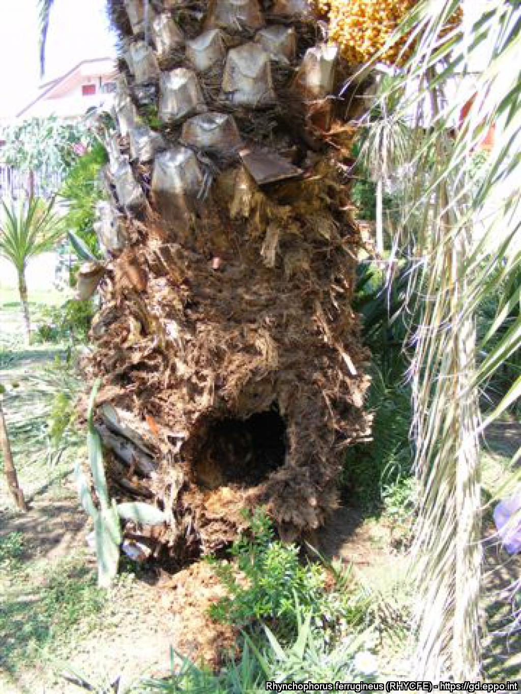 - It is very difficult to detect R. ferrugineus in the early stages of infestation. Generally, it is detected only after the palm has been severely damaged.