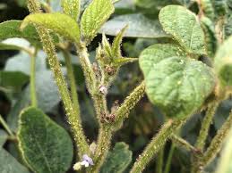 - Leaves, inflorescence stalk and young pods covered with aphids.