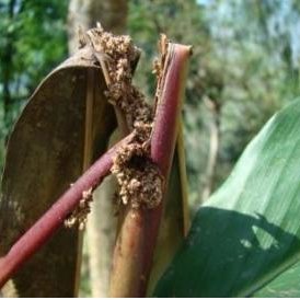 - At the time of flowering, when the caterpillars attack the panicles and spikes it may lead to flower shedding and drying up of the attacked portions.