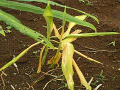 - Infected plants develop shriveled tubers and brown ground tissue.