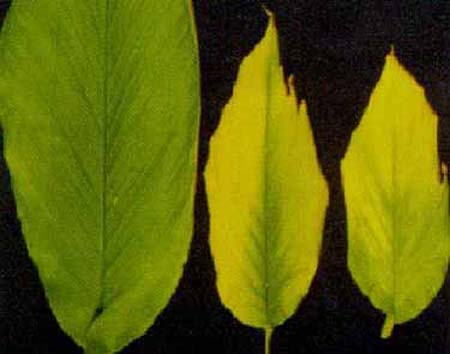 - Pale or yellow color from starts from lower leaves & progresses to upper side leaves of the plant