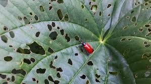 - Adult beetles consume the planting sets, leading to wilting and death of plants.