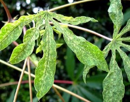 • Mites suck the sap from leaves and cause leaf deformation, with a rough, thickened and shrivelled appearance.