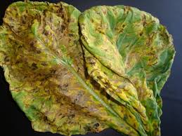 - The first symptom observed are small, light green-yellow lesions on the upper leaf surface, later showing on the undersurface.