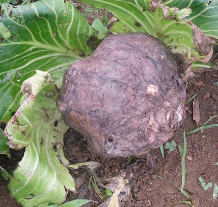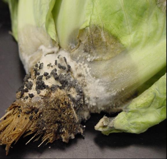 - The fungus eventually colonizes the entire cabbage head and produces large, black, seed like structures called sclerotia on the diseased tissue.