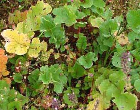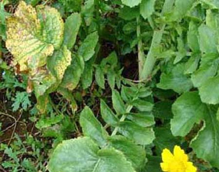 The petiole of the affected plant collapse and as a result the leaf withers.