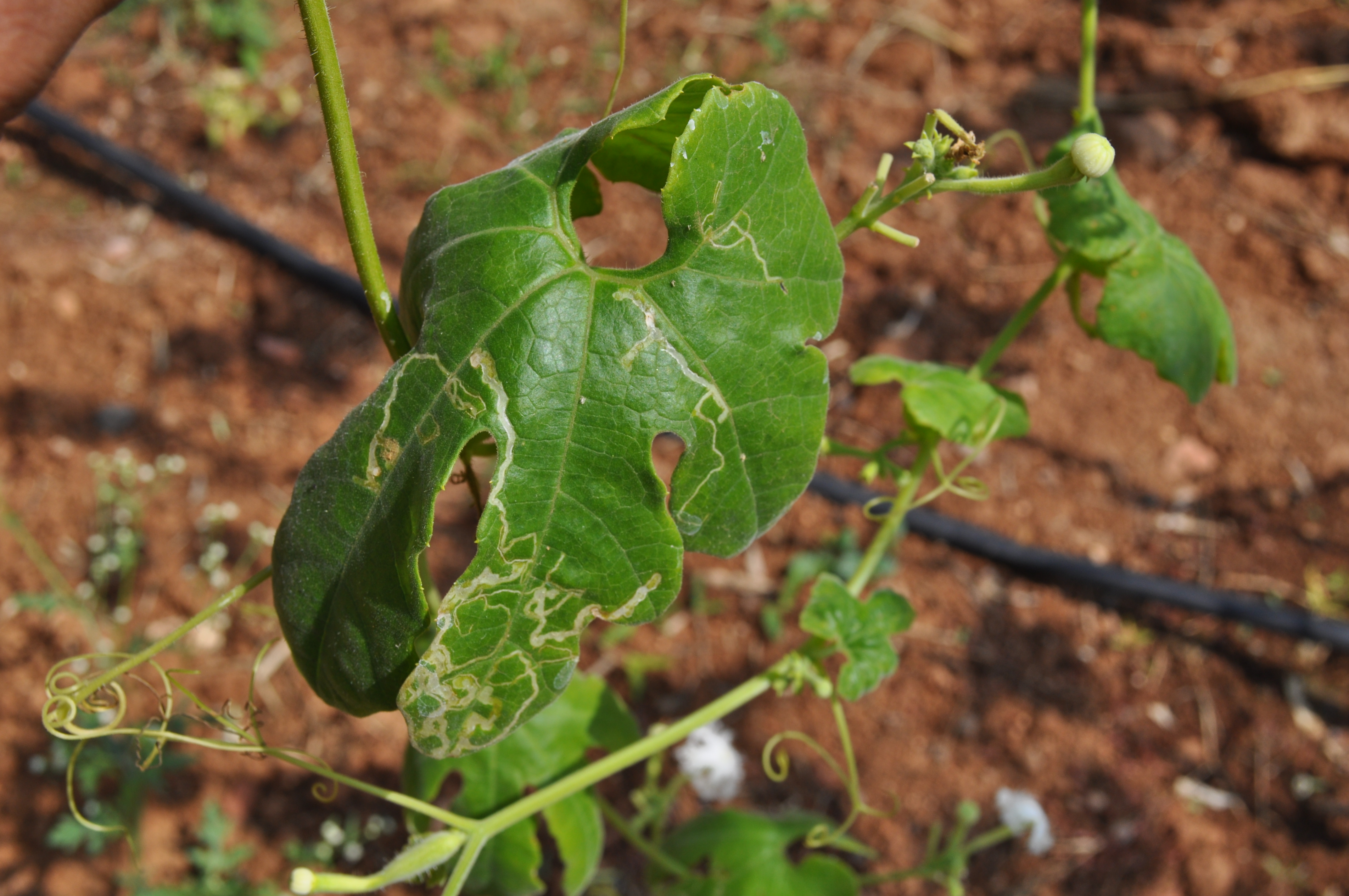 - The characteristic symptoms are serpentine mines on leaves.