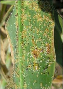 - Aphid sucks the sap from the whorl leaves during the vegetative stage of the crop.