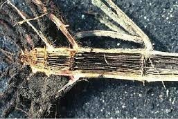 - Affected stalks are soft or spongy at the base and tend to lodge.
