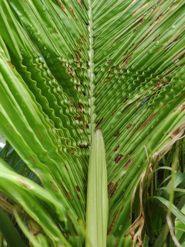 - Spear shortens and the leaves are reduced to an embryonic mid-rib without leaflets. This is the so-called ‘little-leaf’ stage.