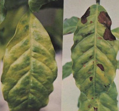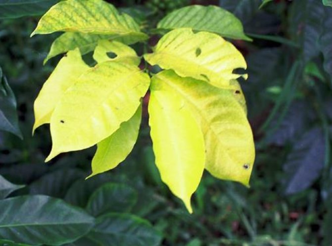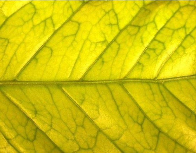 • Interveinal chlorosis (yellowing of areas between veins while vein remain green)