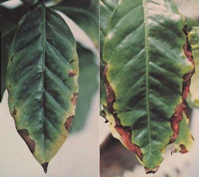 • Necrotic spots observed on leaf tips & margins may turn brown or black colour leads to tissue death