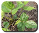 - Foliage may be sparse, small and distorted becoming mottled and bronzy with maturity