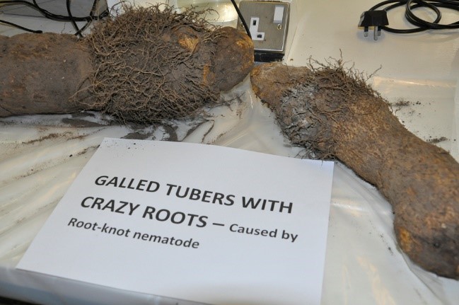 • The warty appearance of the tuber is a result of nematodes attacking the plant.