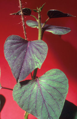 - Red or purple pigmentation may appear on the upper surface of older leaves,