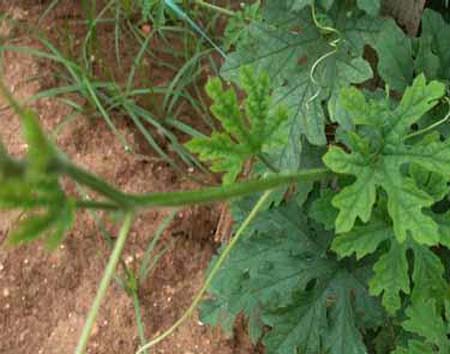 - Leaves pale green in colour and with green veins.