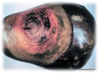 • On fruits pale sunken dull black spots cover entire entire surface.