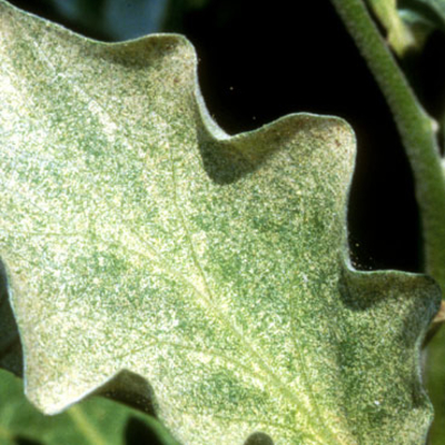 • White speckles, leading to yellowish bleaching of leaves with profuse webbing on the under surface.