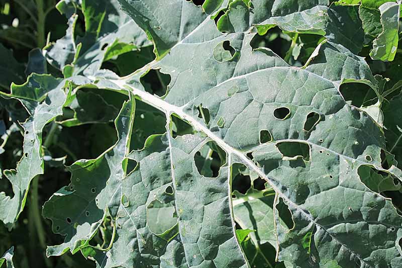 - Larvae cause the damage by biting round holes into the leaves